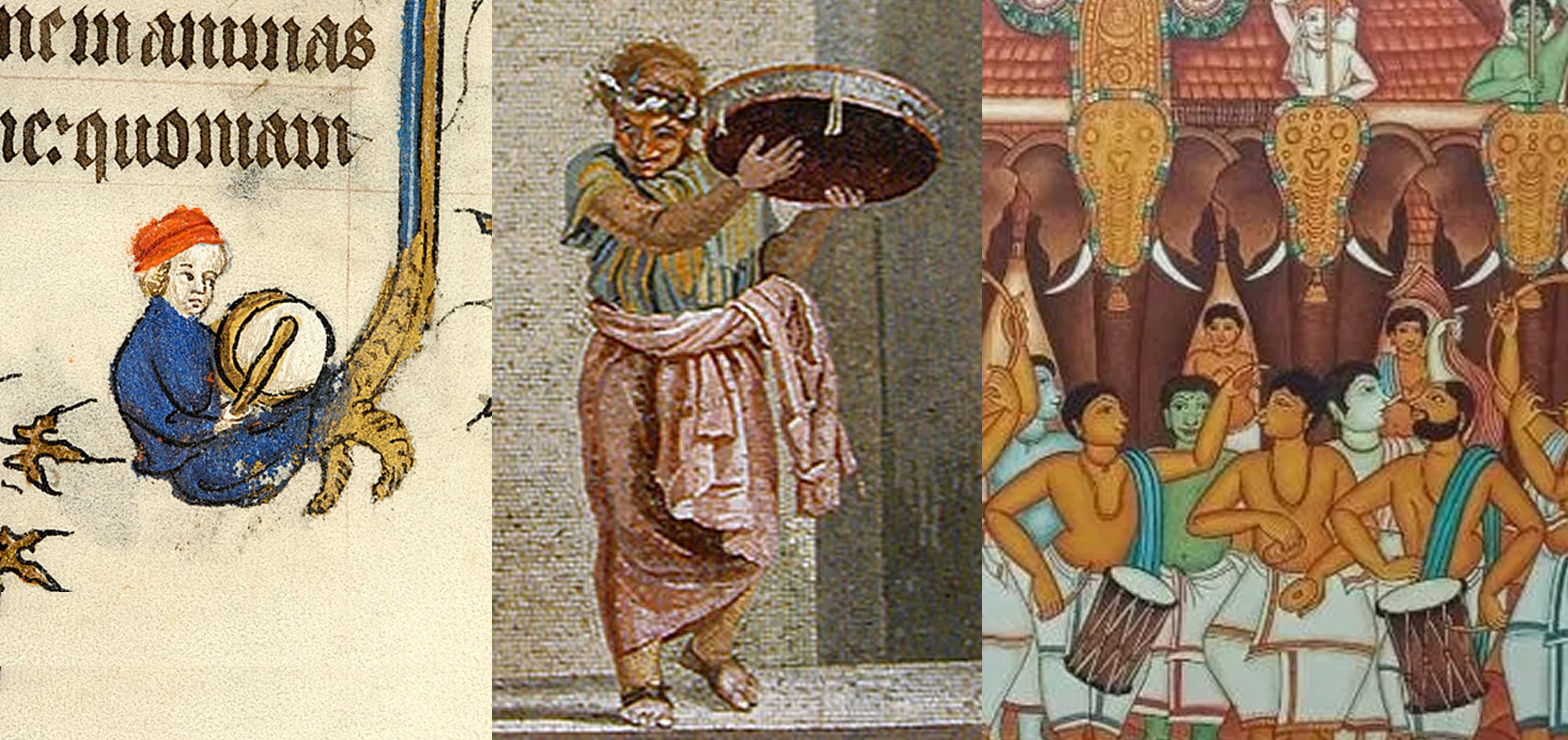 Drums were commonly used in antiquity: by Sumerians, Babylonians, Egyptians, Hebrews (more on that below), Greeks, and Romans. Important for the Greco-Romans was the τύμπανον (týmpanon), a percussion instrument played by hand or with sticks, and commonly classified as a frame drum. It was generally used by the pagans for religious processions and celebrations in their temples, as well as the mystery cults of Dionysius and Cybele. Notably, the third- and second-century BCE translators of the LXX (that is, the Greek Old Testament) often translated tof, the Hebrew term for "drum", as týmpanon. In other words, týmpanon came to be used as a general term for drums.